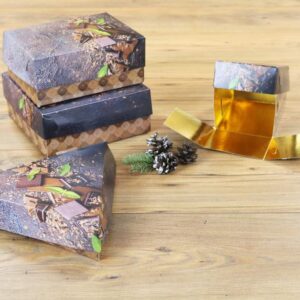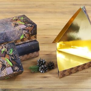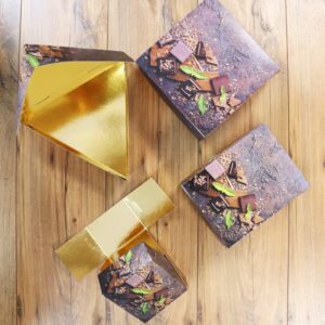 - Cutii prajituri cu model „Choco” potrivite pentru livrarea si transportul prajiturilor, avand interiorul laminat ( rezistent la umiditate) , ceea ce mentinere calitatea continutului.-Aceste cutii pentru prajituri, rulade sau fursecuri sunt prevazut cu sistem autoformare si va permit depozitarea lor intr-un spatiu mic, fiind necesarea montarea lor doar in momentul ambalarii.-Materialul laminat din interior va permit montarea prajiturilor si fara tavitele de carton.
